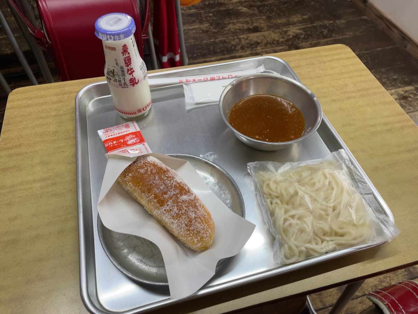 小学生の時に食べた学校給食が、まさか高山に来て食べられるとは思っていませんでした。主人の子供の頃はソフト麺は無かったそうですが地域によって違いがあるんでしょうね。あげパンは熱々でミルメークも美味しかったです。