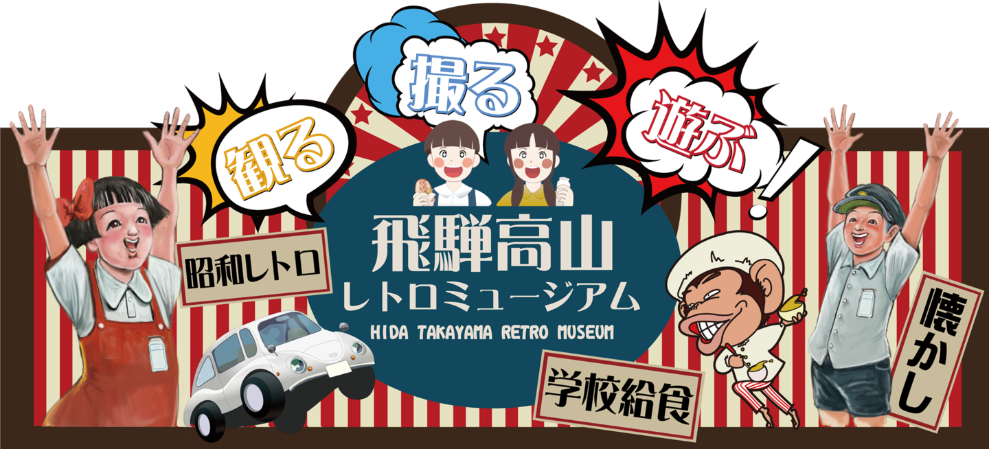 年間約10万人が訪れる飛騨高山の人気スポット。昭和20年~50年代にタイムスリップしたかのような町並みを歩きながら当時のフィギュアや雑誌、ポスター、おもちゃ、駄菓子屋ゲーム、昭和レトロなパチンコなどを実際に「観て」「撮って」「遊ぶ」ことができる家族や若者に大人気の体験型の博物館。小学校ブースではソフト麺や揚げパン、ミルメークなどの学校給食体験も。懐かしい昭和の給食を食べてみませんか?