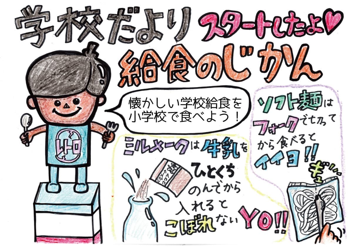 小学校の時代に食べたソフト麺や、あげパン、ミルメークなどを食べることができます。パン、ソフト麺、牛乳は高山市内の企業さんから仕入れております。小学校の中で食べていただき当時を思い出しながら、懐かしい学校給食を楽しんでください。